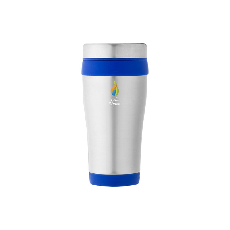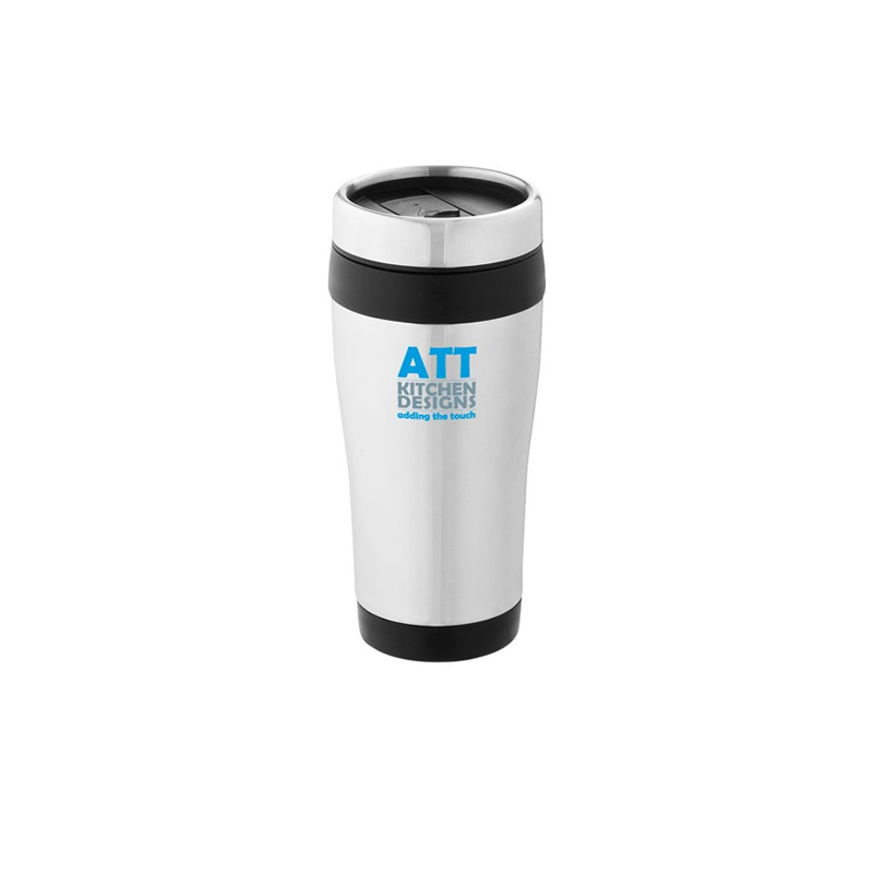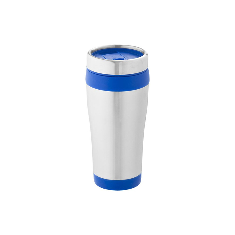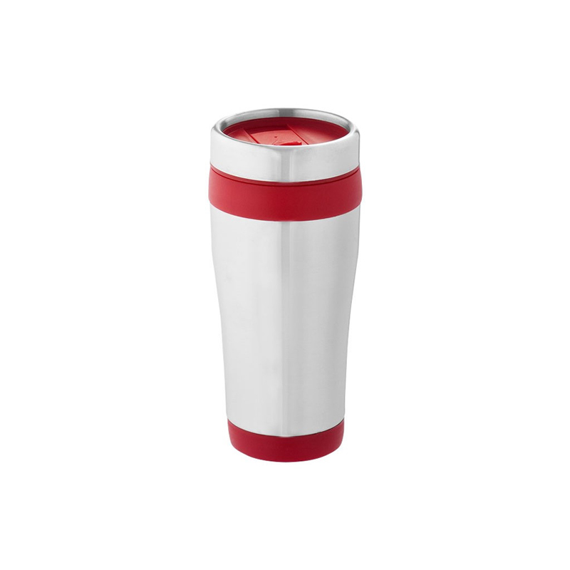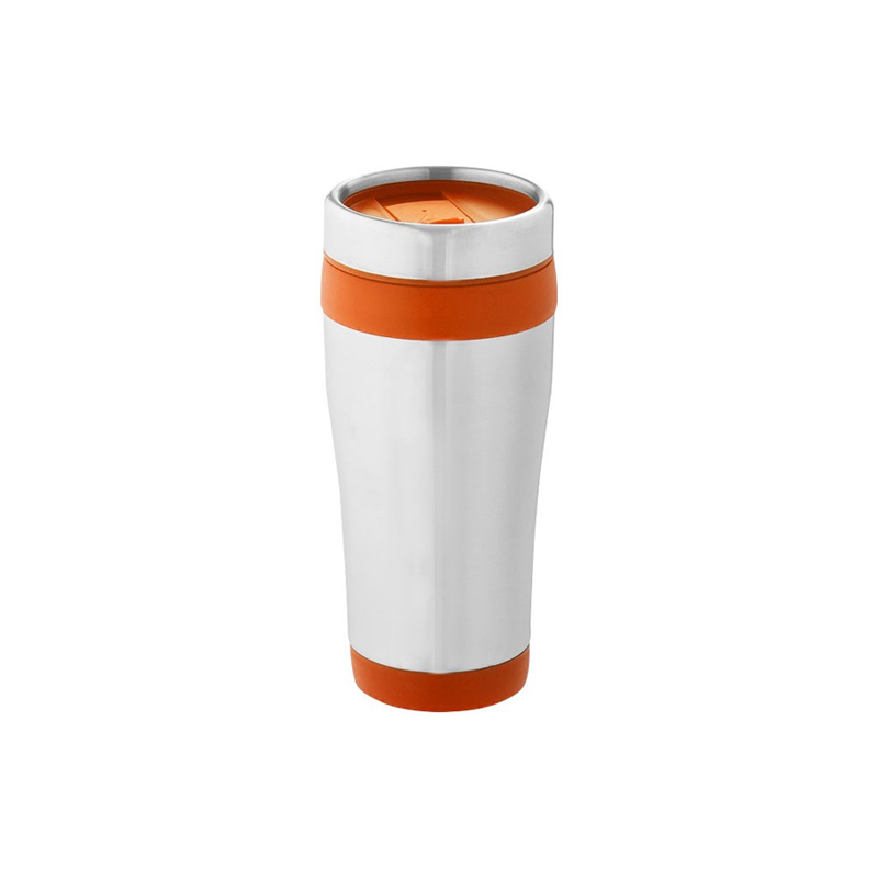Double walled mug with twist on thumb slide lid.
