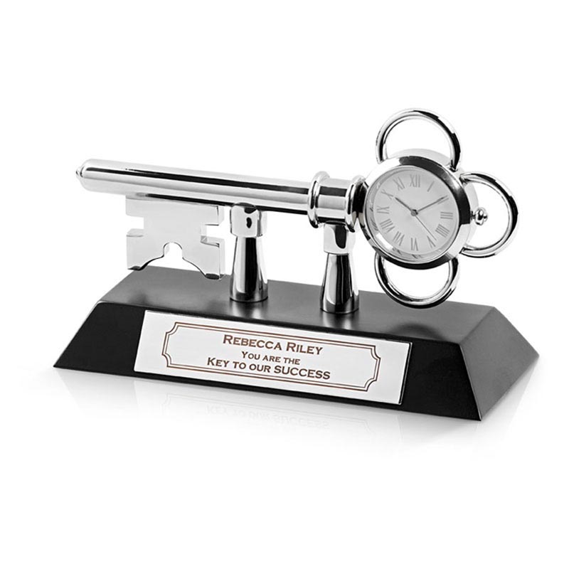 heavy zinc alloy key clock with wooden base