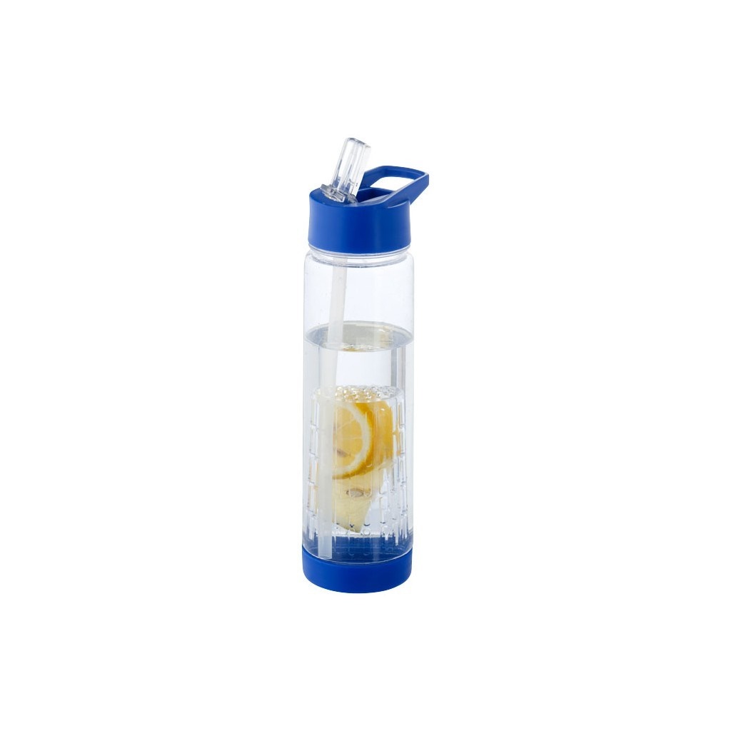 Bottle with twist on lid wtih flip top drinking spout. Includes twist on fruit infuser to add flavour to your favourite drink. Base twists off for access to infuser and easy cleaning. Volume capacity is 740 ml. BPA Free EA